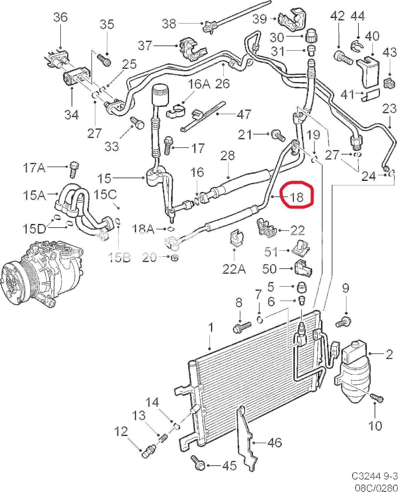 サーブ 9-3 B204/205用 エアコン コンデンサーホース【新品】