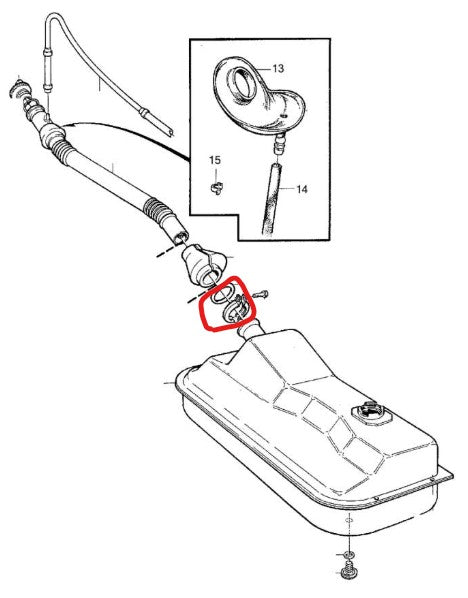 ボルボ 240 260 ガソリンタンク・フィラーホースクランプ・Oリング付【ボルボ純正・新品】